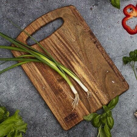 Доска разделочная 28,0*20,0*1,5 см Материал - акация Рекомендуется ручная мойка Упаковка - цветной рукав