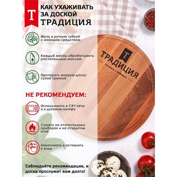 Доска разделочная 24см круглая ТМ Традиция, изготовлена из натуральной древесины. Бук 100%. Не подходит для посудомоечной машины.