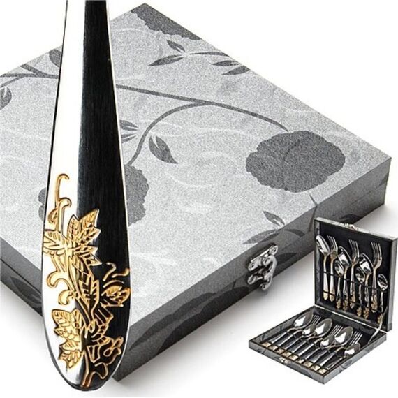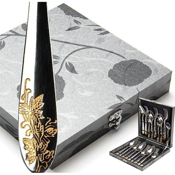 Набор столовых приборов MAYER&BOCH на 6 персон включает в себя 18 предметов: 6 столовых ложек, 6 столовых вилок, 6 чайных ложек. Столовые приборы изготавливаются из высококачественной нержавеющей стали, все изделия проходят тщательный технологический контроль. Приборы из нержавеющей стали такого состава отличаются высокими антикоррозионными свойствами, значительной устойчивостью к воздействию кислот и щелочей. Такая сталь не изменяет вкус и цвет пищи, не выделяет вредных веществ. Элегантные золотые узоры на столовых приборах выполнены по технологии плазменного напыления, обеспечивающего высокую износостойкость покрытия. Стильный, классический дизайн и отличное качество столовых приборов MAYER&BOCH делают набор желанной покупкой для любого, даже самого пристрастного, клиента. Набор столовых приборов MAYER&BOCH, безусловно, займет достойное место на любой кухне. Набор подходит как для ежедневного использования, так и для торжественных случаев. Набор упакован в красивый подарочный деревянный кейс. Подходит для м