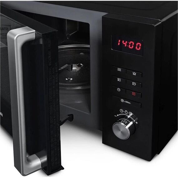 Простотой ухода отличается микроволновая печь Hyundai HYM-M2062 мощностью 800 Вт. Выполнена она в эффектном черном цвете, стильном дизайне, прочном металлическом корпусе. Предусмотрено 8 режимов тепловой обработки продуктов, среди которых программирование и экспресс приготовление различных блюд, автоматическая разморозка и разогрев. Встроенный гриль дает возможность порадовать домочадцев и гостей аппетитным мясом или рыбой с хрустящей корочкой. Микроволновая печь Hyundai HYM-M2062 оснащена внутренней камерой объемом 23 л, что удобно для большой семьи. Внутреннее пространство имеет эмалевое покрытие, безопасное, экологичное, простое в уходе. Память устройства хранит рецепты приготовления блюд. Дверца с окошком открывается при помощи ручки, предусмотрена опция защиты от детей.
