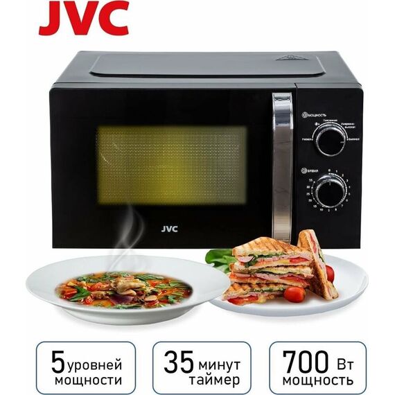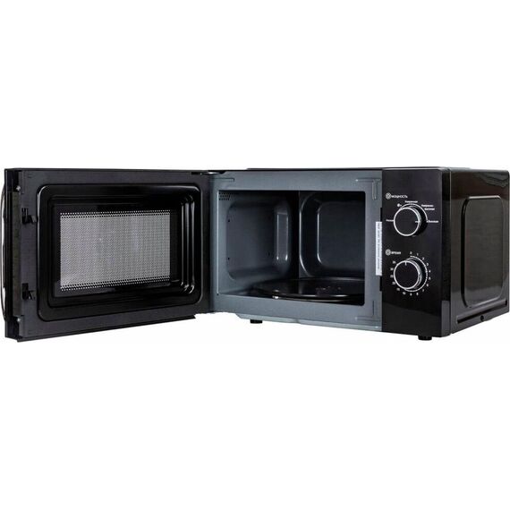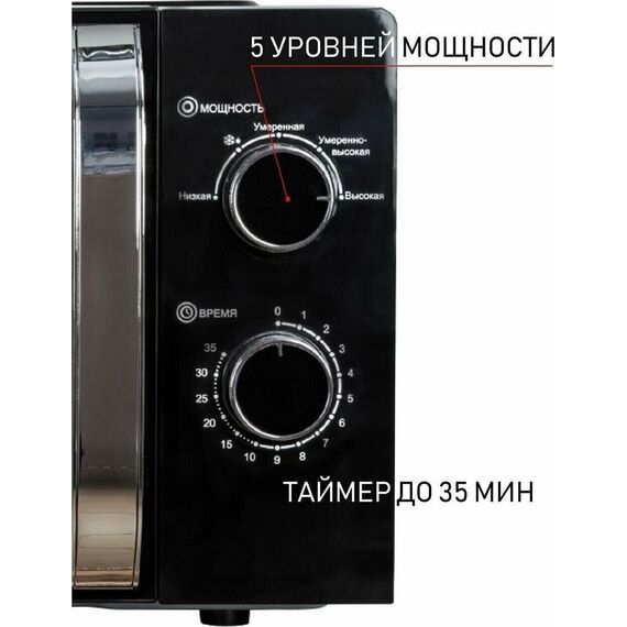Печь микроволновая, объем 20л, выходная мощность 700 Вт, тип управления: механический, диаметр поворотного стола: 255 мм, количество уровней мощности: 5, автоматическое размораживание, таймер: 35 минут, тип открывания дверцы: ручка, сигнал окончания приготовления, цвет: черный