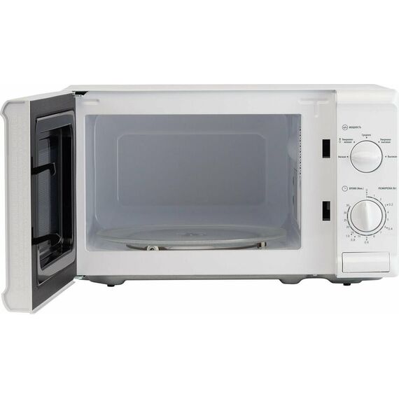 Объем 20 л; Мощность 700 Вт; 5 уровней мощности; Максимальное время приготовления 35 мин; Поворотный стол 25,5 см; Функция разморозки; Сигнал об окончании готовки; Механизм открывания дверцы – кнопка; Тип управления: механический; Цвет: белый