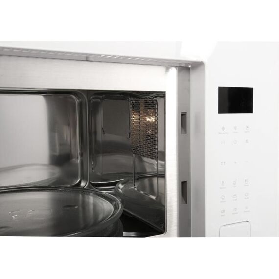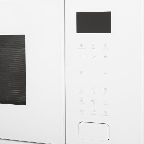 Габариты ВхШхГ, см: 39х59,5х38,2; Полезный объём, л.: 25; Тип подключения: Электрический; LED -дисплей; Таймер; Цвет модели: Белый; Материал панели управления: Стекло; Внутреннее покрытие камеры: Нержавеющая сталь; Открытие двери: Кнопочное; Фасад: Стеклянный; Автоматические программы приготовления: 8; Гриль в микроволновой печи: Кварцевый; Количество уровней мощности: 5; Мощность микроволн, Вт.: 900; Роликовая подставка: 1; Стеклянная тарелка: 1; Решётка для гриля: 1; Функция "Блокировка от детей"