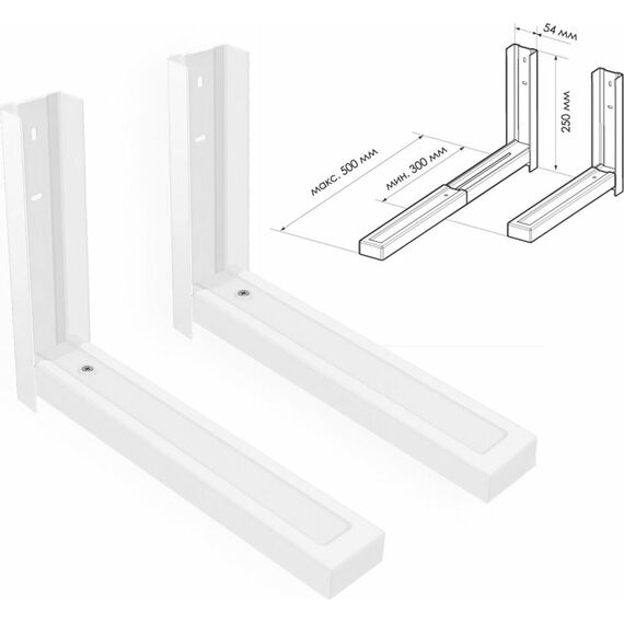 Кронштейн С 2 используется для крепления микроволновой (СВЧ) печи. Нагрузка макс: 40 кг. Цвет: белый. Упаковка: 85*310*360 мм. Масса: 2,57 кг. Позволяет выдвинуть основания от 300 мм до 500 мм.