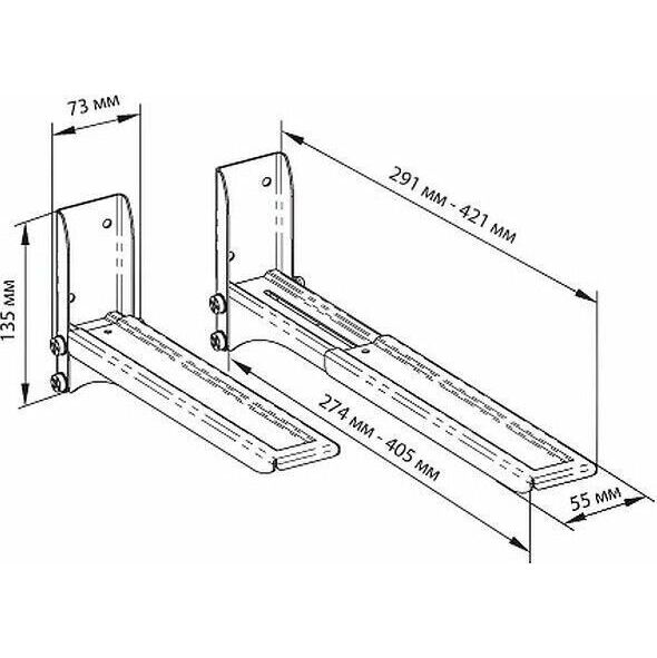 Кронштейн С 7 используется для крепления микроволновой (СВЧ) печи. Нагрузка макс: 40 кг. Цвет: черный. Упаковка: мм. Масса: 1,57 кг. Опоры-основания регулируются от 291 мм до 421 мм.
