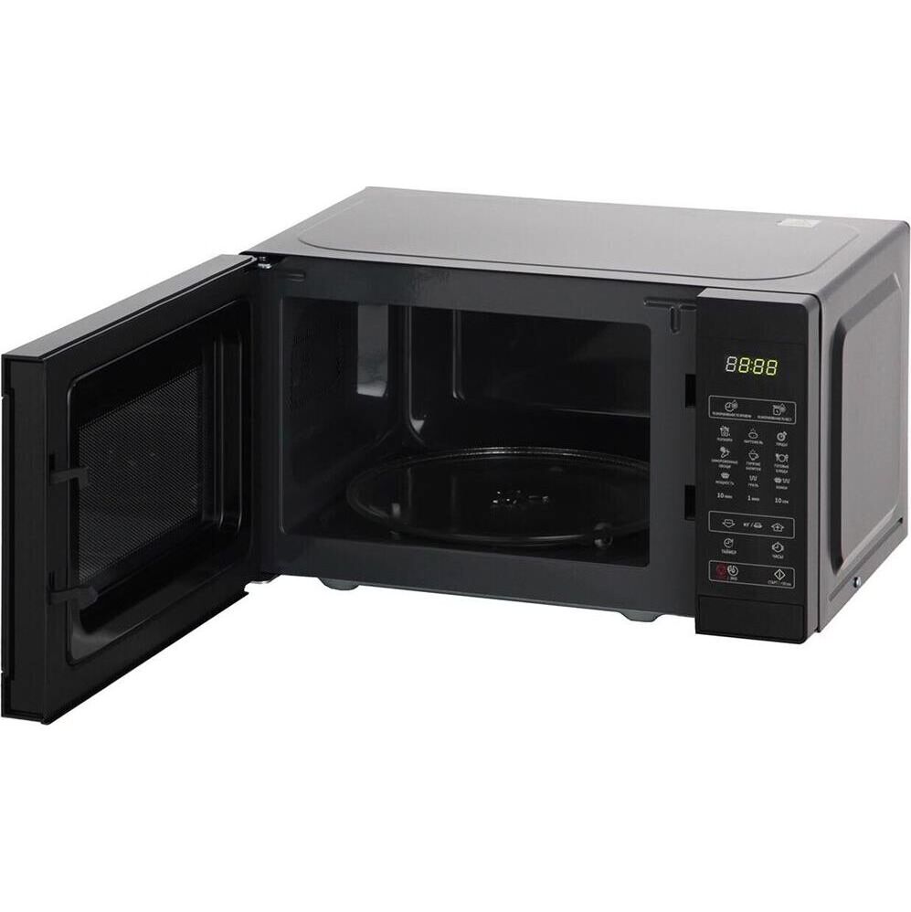 Объем камеры 20 л *Цвет черный * Диаметр поворотного стола 25.5 см * Внутреннее покрытие эмалированная сталь * Мощность гриля 1000 Вт * Тип гриля ТЭН * Функция "Кухонный таймер" * Автоменю 6 программ * Блокировка от детей * Тип открывания дверцы клавиша * Тип управления электронный * Звуковой сигнал *