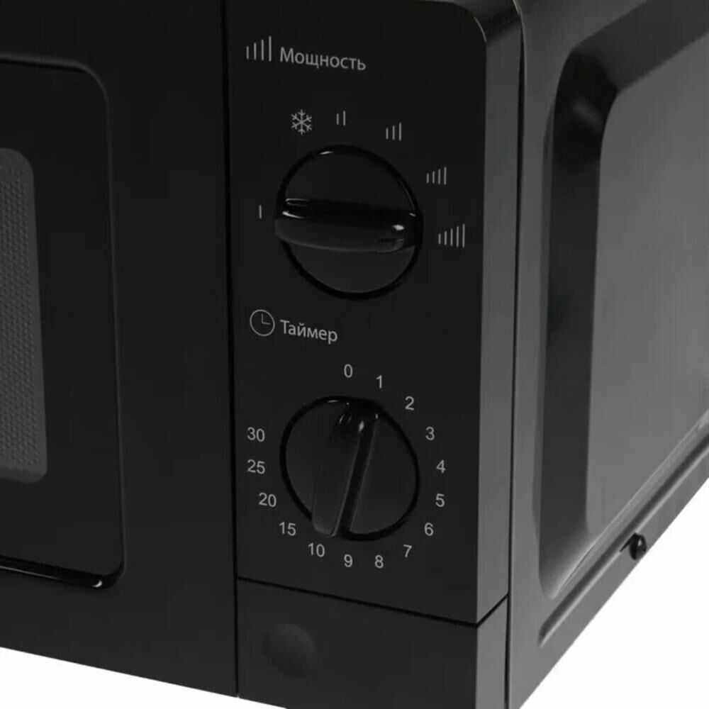 Печь микроволновая, Объем 20 литров, Мощность 700 ватт, Механическое управление, 5 уровней мощности, Таймер, Диаметр поворотного стола 245 мм, Функция разморозки, Цвет корпуса: Черный