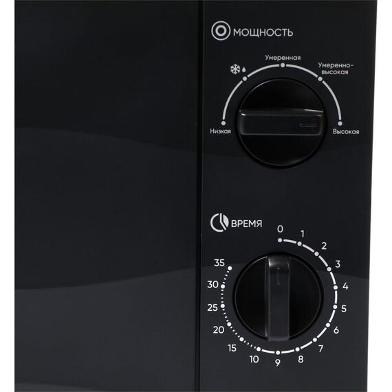 Печь микроволновая, Объем 20 литров, Мощность 700 ватт, Механическое управление, 5 уровней мощности, Таймер на 35 минут, Диаметр поворотного стола 245 мм, Функция разморозки, внутренняя подсветка, Цвет корпуса: черный