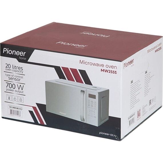 Микроволновая печь, внутренний объем: 20 литров, выходная мощность печи: 700 Вт, тип управления: сенсорный, диаметр поворотного стола: 255 мм, количество уровней мощности: 5, количество программ автоматического приготовления: 8, автоматическое размораживание, таймер: 99.99 минут, блокировка от детей, тип открывания дверцы: ручка, сигнал окончания приготовления, зеркально стекло дверцы, цвет: серебро