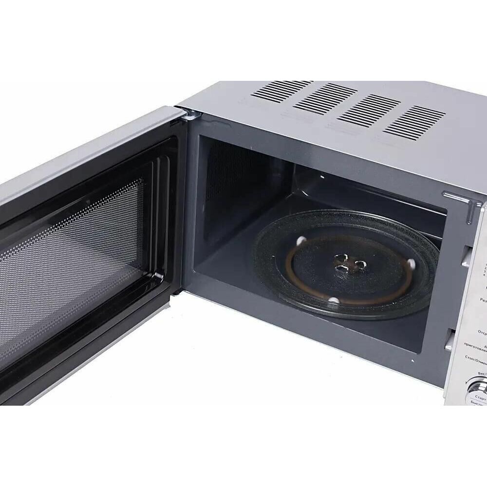 Мощность микроволн 700 Вт Объем 20 л 6 уровней мощности Электронное управление Наличие дисплея с часами Внутреннее покрытие камеры - эмаль Автоматическая разморозка Экспресс-режим приготовления Блокировка от детей Цвет серый/серебристый Срок гарантии 12 мес