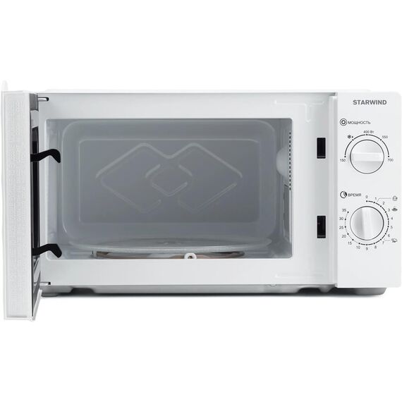 Объем 20 л; Мощность 700 Вт; Сигнал об окончании готовки; Тип управления: механический; Регулировка мощности; Таймер на отключение, максимальное время 35 мин; Автоматическая разморозка; Цвет: белый