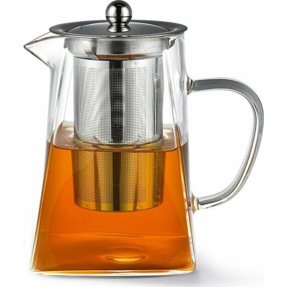 Заварочный Чайник из термостойкого стекла. Объём: 1,0 л.Жаропрочное стекло. Фильтр из нержавеющей стали. Металлическая крышка.Эргономичная ручка. Удобный носик. Легко чистится. Подходит для посудомоечных машин.