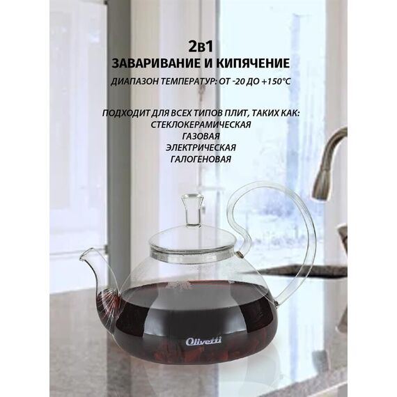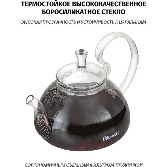 Чайник из термостойкого стекла 2-в-1 для заваривания и кипячения * Емкость общая 800мл * *Термостойкое боросиликатное стекло * Выдерживает температуры от -20°С до +150°С * Эргономичный фильтр-пружинка * Высокая прозрачность и устойчивость к царапинам * Усиленный контроль качества на производстве * Удобство очистки и мытья фильтра * Можно мыть в посудомоечной машине