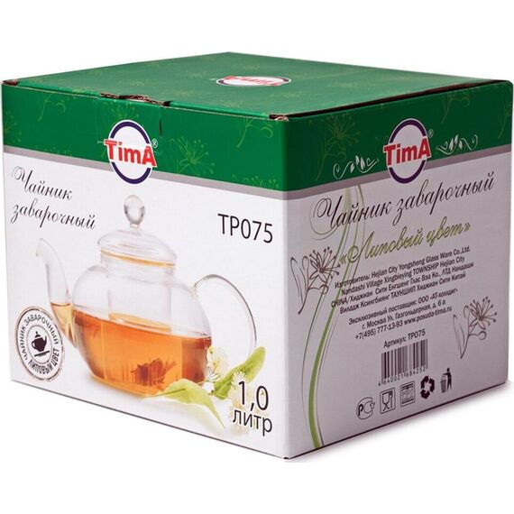 Заварочный чайник TIMA Чайник заварочный стеклянный "ЛИПОВЫЙ ЦВЕТ" 1000мл со стеклянным ситом TP075