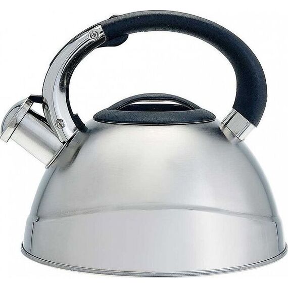 ALPENKOK AK-531 Объем 3 л. Толщина стали 0,4 мм. Чайник из нержавеющей стали со свистком. Высококачественная нержавеющая сталь. Матовая полировка. Индукционное дно. Термостойкая бакелитовая ручка с кнопкой для открывания носика. Цвет ручки и крышки: черный. Пригоден для использования на всех типах кухонных плит, включая индукционные.