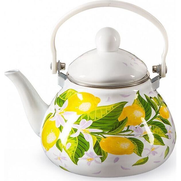 EM-131X1/62 Чайник эмалированный с фильтром из нерж.стали "Лимоны" 1,3л Параметры Объем 1,3 л Описание Чайник эмалированный с фильтром из нержавеющей стали Трехслойное внутреннее и внешнее эмалевое покрытие, устойчивое к воздействию пищевых кислот Съемный фильтр из нержавеющей стали Зачерненное дно с повышенной термоотдачей Эргономичная подвижная ручка Может быть использован на всех типах кухонных плит: электрических, газовых, керамических, индукционных Подходит для мытья в посудомоечной машине