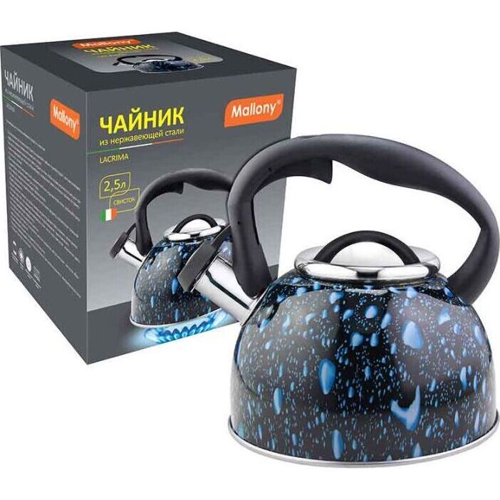 Чайник из нерж стали MALLONY LACRIMA, 2,5 л, со свистком, окрашенный (черный с синими каплями) (003979)