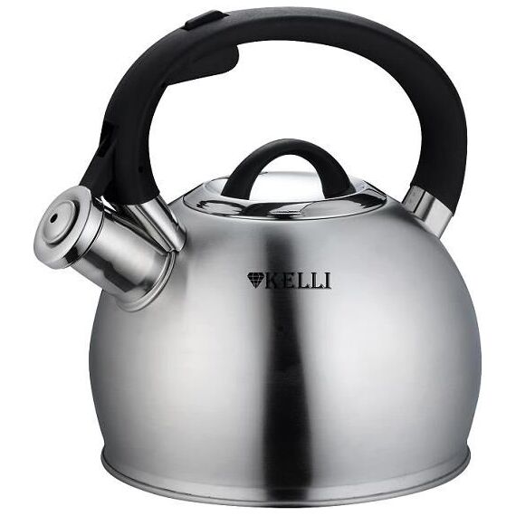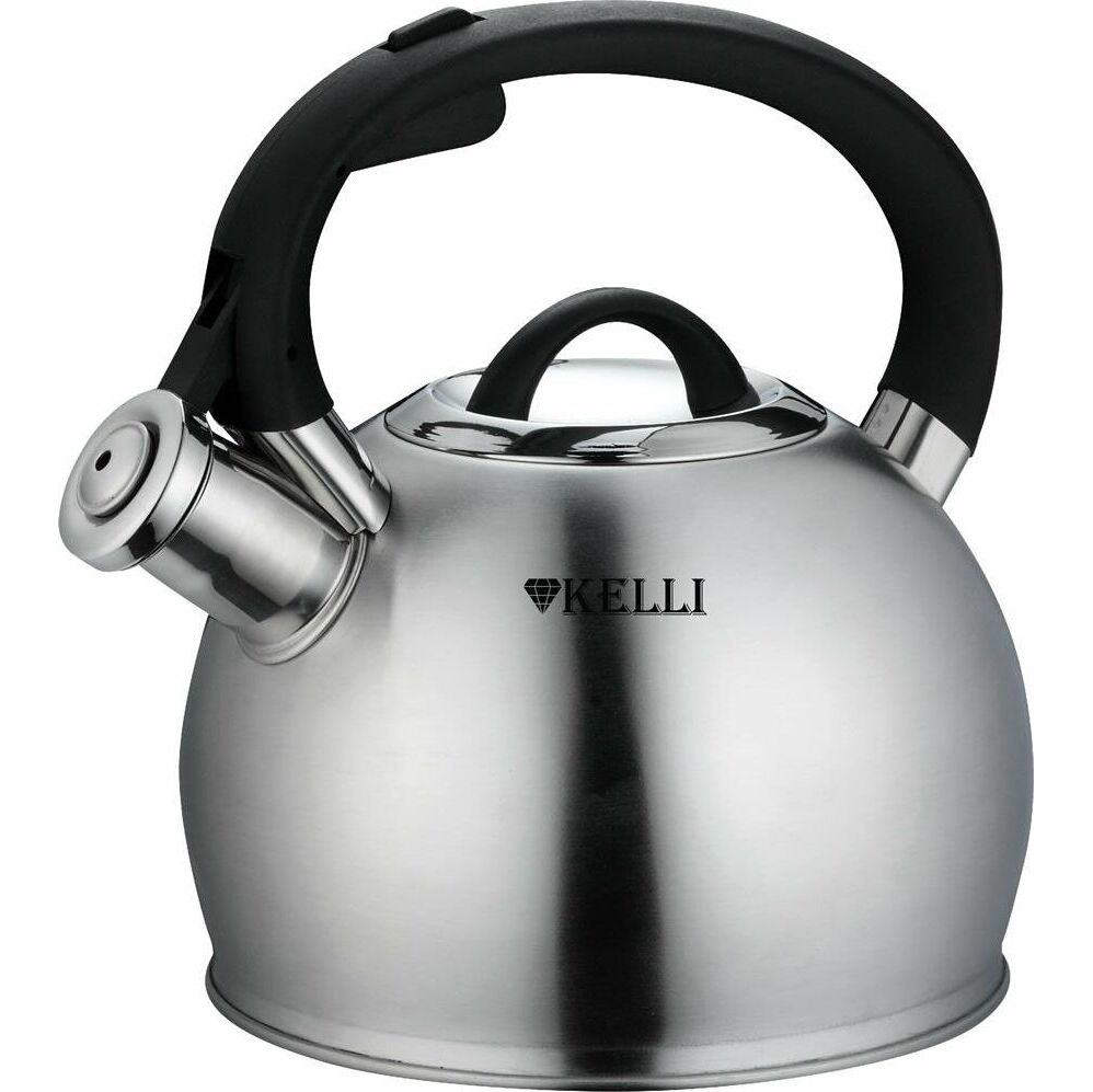 Металлический чайник со свистком Объем: 2л Высококачественная нержавеющая сталь Многослойное капсульное дно Эргономичная ручка не нагревается Свистит при закипании воды Пригоден для всех видов плит