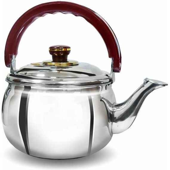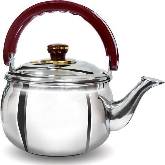 Металлический чайник со свистком Объем: 3 л. Высококачественная нержавеющая сталь. Носик с крышкой. Ручка не нагревается, Свистит при закипании воды. Литое дно.