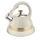 Металлический чайник со свистком Объем: 3,5 л Высококачественная нержавеющая сталь Многослойное капсульное дно Эргономичная ручка не нагревается ECO FRIENDLY Свистит при закипании Зеркальная полировка Подходит для всех видов плит Цвет кремовый