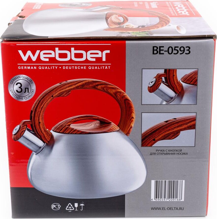 Чайник со свистком WEBBER BE-0593 со свистком 3л, сатин (12)