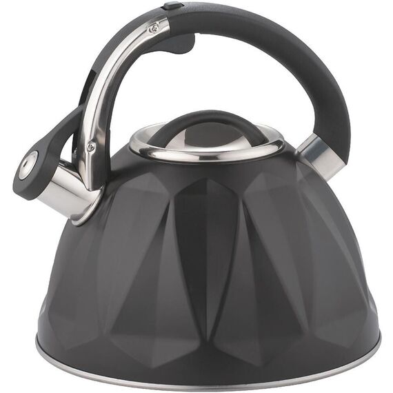 Чайник со свистком, 3,0 л, нержавеющая сталь, КАПСУЛИРОВАННОЕ ИНДУКЦИОННОЕ ДНО, КУРКОВЫЙ МЕХАНИЗМ, внешнее антипригарное декоративное покрытие, устойчивое к высоким температурам; комбинированная фиксированная ручка.
