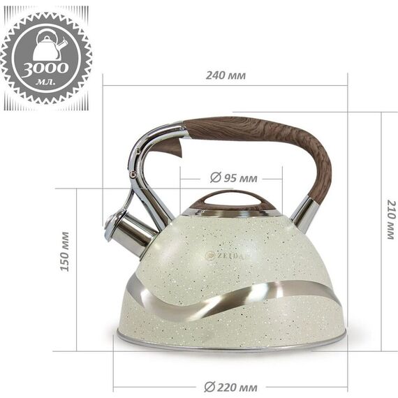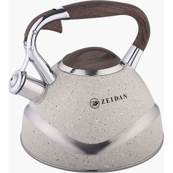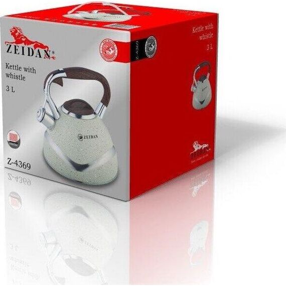 ZEIDAN Z-4369 Чайник со свистком ZEIDAN Z-4369 3,0 л , Чайник со свистком, 3,0 л, нержавеющая сталь, капсулированное индукционное дно, курковый механизм, внешнее покрытие - антипригарное цветное покрытие, устойчивое к высоким температурам, ручка с покрытием "soft-touch" под дерево. Подарочная упаковка.