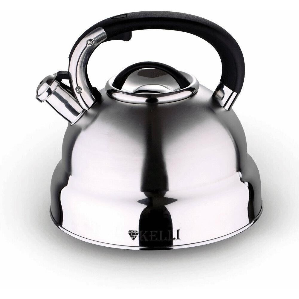 Металлический чайник со свистком Объем: 5л. Высококачественная нержавеющая сталь Теплоемкое капсульное дно Пластиковая ручка не нагревается Свистит при закипании Современный дизайн