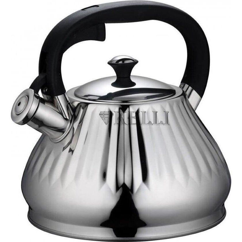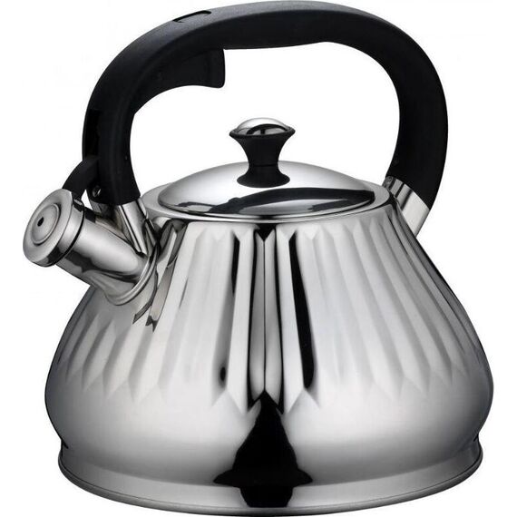 Металлический чайник со свистком Объем: 3,5 л Высококачественная нержавеющая сталь, теплоемкое капсульное дно, Эргономичная ручка не нагревается, свистит при закипании воды