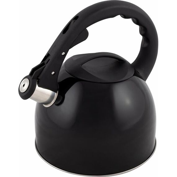 Чайник из нерж. стали со свистком Объем: 2,5 литра Материал: нержавеющая сталь, пластик (нейлон) Толщина стали - 0,4 мм Цвет:черный, глянцевый. Однослойное дно Cо свистком Подходит для всех типов плит. Не рекомендуется мыть в посудомоечной машине. Упаковка - индивидуальная цветная коробка