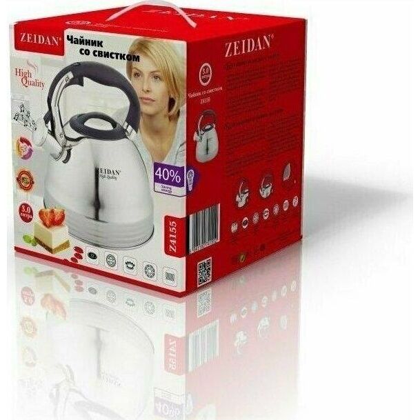 Чайник со свистком, 3,0 л, нержавеющая сталь, КАПСУЛИРОВАННОЕ ИНДУКЦИОННОЕ ДНО, КУРКОВЫЙ МЕХАНИЗМ, зеркальная полировка корпуса, фиксированная комбинированная ручка. Подарочная упаковка с пластиковой ручкой.