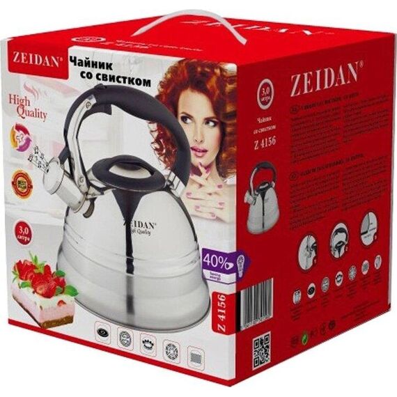 Чайник со свистком, 3,0 л, нержавеющая сталь, КАПСУЛИРОВАННОЕ ИНДУКЦИОННОЕ ДНО, КУРКОВЫЙ МЕХАНИЗМ, комбинированная полировка корпуса, фиксированная комбинированная ручка. Подарочная упаковка с пластиковой ручкой.