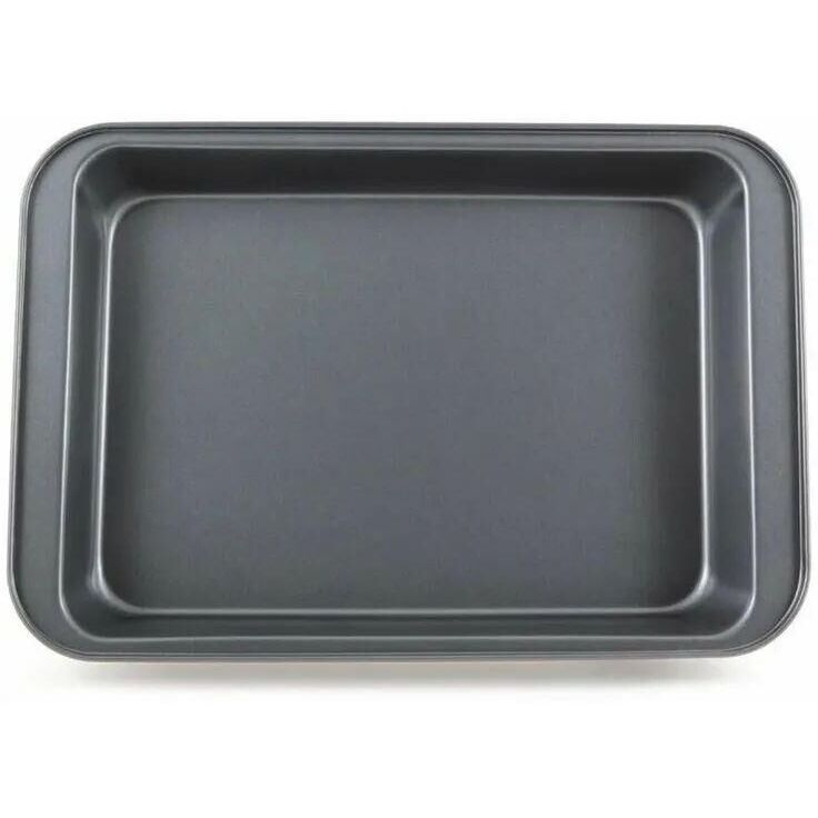 Противень прямоугольный из углеродистой стали Характеристики: Размер: 42,5*28,5*5 см Толщина стали: 0,4 мм Вес: 507 г Цвет: серый