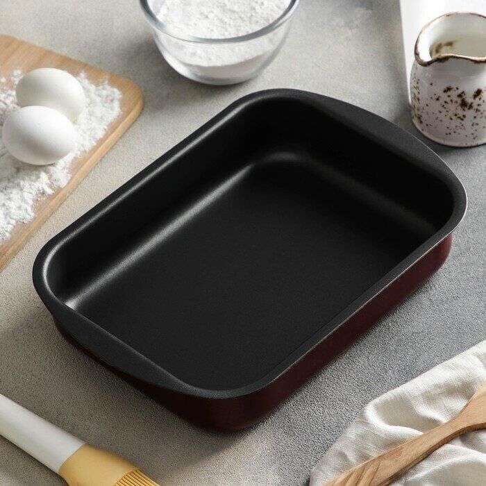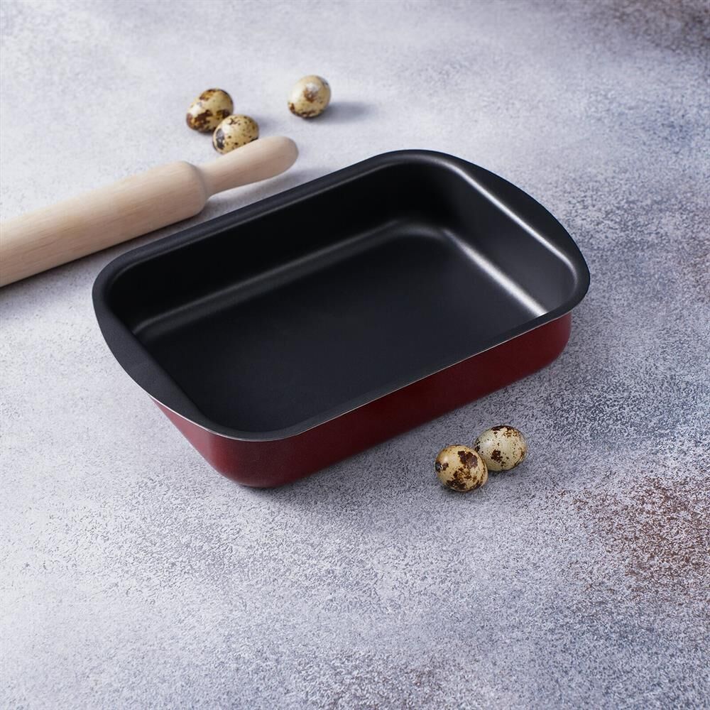 Размеры 290х200х50 мм. Основание алюминий 1,8 мм. Внешнее покрытие декоративное, цвет- бордовый. Европейская фурнитура. Быстрый и равномерный нагрев. Высокие антипригарные свойства. Толщина дна: 1.8 Толщина стенок: 1.8 Источник тепла: Газовая и электрическая плиты Тип упаковки: цветной лейбл Внутреннее покрытие: антипригарное покрытие Deko/Skandia Внешнее покрытие: антипригарное покрытие Xylac Whitford Ручка: бакелитовая