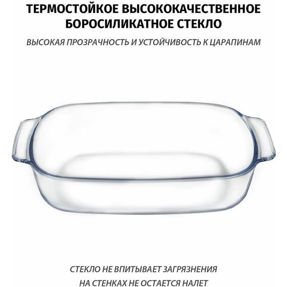 Формы для запекания 2 и 2,7 литра. Термостойкое боросиликатное стекло. Эргономичный ручки для подачи. Выдерживает температуры от -20°С до +150°С. Подходят для микроволновых печей и духовых шкафов. Можно мыть в ПММ.