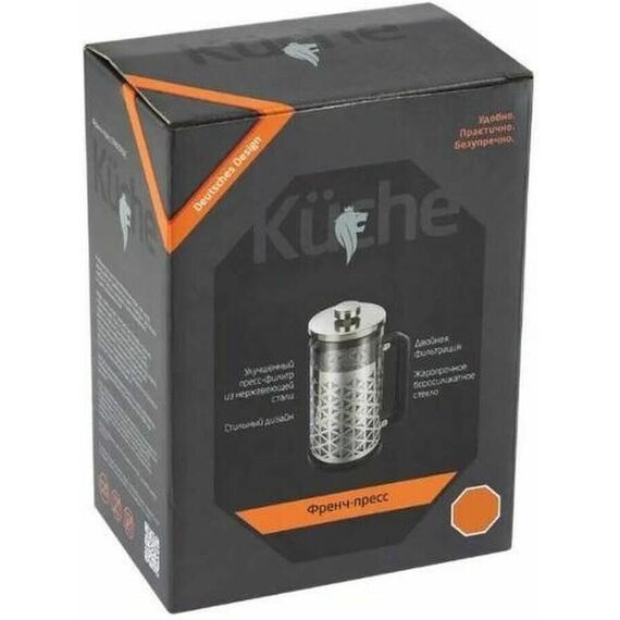 Френч-пресс, FANTASIE, объем 350 мл Материал: корпус из жаропрочного стекла, нерж стали 201 (толщиной 0,4 мм), ручка + база из полипропилена, фильтр из 304 нерж стали. Толщина стекла: 2 мм. Объем: 350 мл. Упаковка: цветная коробка. Коэффициент линейного расширения стекла - (3,3±0,1) *10-6K-1