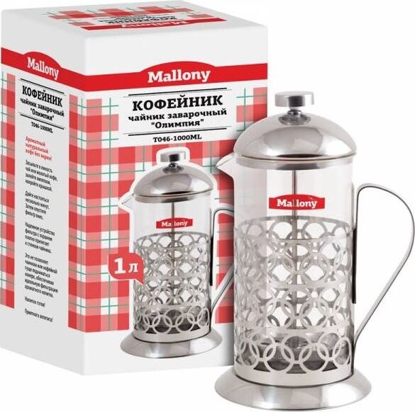 Френч-пресс MALLONY T046-1000ML чайник/кофейник 1,0л "Olimpia" (сталь) (950093)