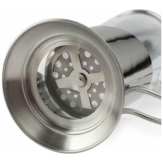 Френч - пресс - это устройство изначально использовавшееся для приготовления кофе, путем заваривания и отжима, включает в себя стеклянную емкость и поршень с фильтром. Для френч - пресса используют специально крупнопомолотый кофе. На данный момент френч - пресс широко применяется и для заваривания чая, настаивания трав и ягод. Это прекрасная альтернатива заварочному чайнику, пресс легко моется и не занимает много места на кухне.Френч-пресс изготовлен из устойчивого к перепадам температуры боросиликатного стекла. Ручка и крышка медного цвета не нагреваются, поэтому вы не рискуете обжечься. Это необходимая вещь для любого чаёвника или кофемана.