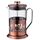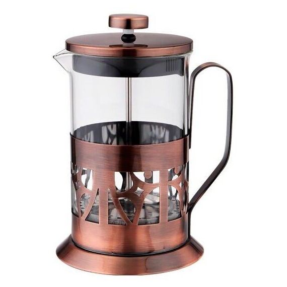 Френч - пресс - это устройство изначально использовавшееся для приготовления кофе, путем заваривания и отжима, включает в себя стеклянную емкость и поршень с фильтром. Для френч - пресса используют специально крупнопомолотый кофе. На данный момент френч - пресс широко применяется и для заваривания чая, настаивания трав и ягод. Это прекрасная альтернатива заварочному чайнику, пресс легко моется и не занимает много места на кухне.Френч-пресс изготовлен из устойчивого к перепадам температуры боросиликатного стекла. Ручка и крышка медного цвета не нагреваются, поэтому вы не рискуете обжечься. Это необходимая вещь для любого чаёвника или кофемана.