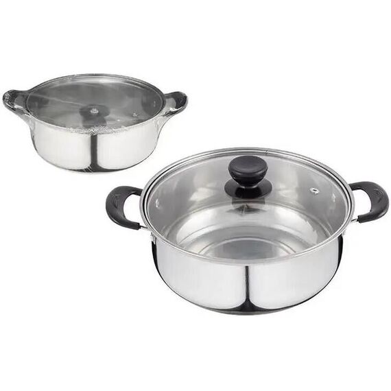 БЕЗ ТМ Кастрюля Promo, объем 2,9 л, из нержавеющей стали с крышкой из жаропрочного стекла (104615)