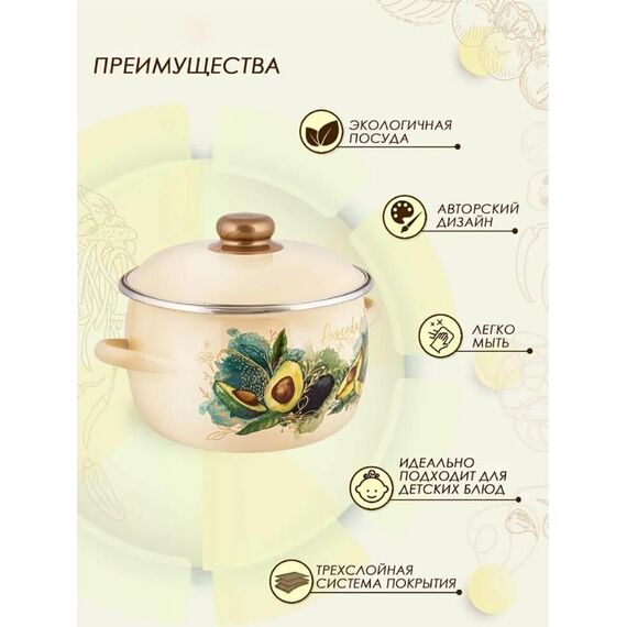 Кастрюля эмалированная 3,0л сферическая, толщина дна: 0,8мм толщина стенок: 0,8мм. Тип упаковки: коллективная Крышка: эмалированная Внутреннее покрытие: эмаль Внешнее покрытие: эмаль Подходит для всех типов плит, включая индукционные. Можно мыть в посудомоечной машине.