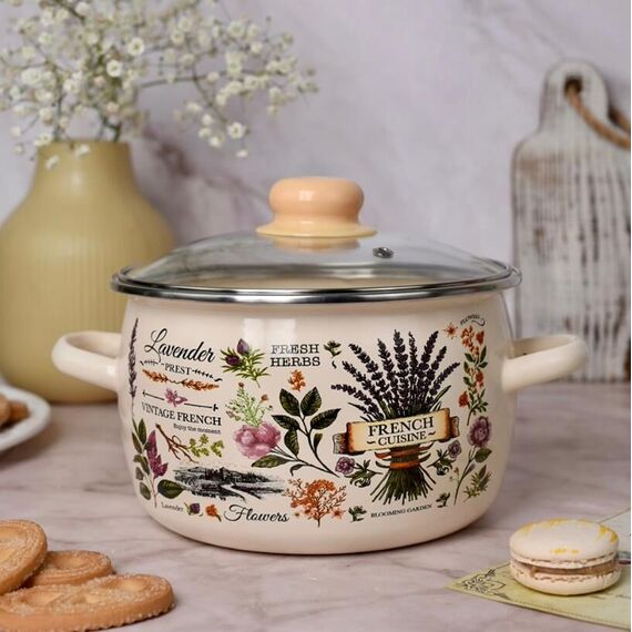 С нержавеющим ободком и стеклянной крышкой, в термоусадочной пленке Объем, л./размер, см: 2.0 л Материал: эмалированная сталь Толщина дна: 1.3 Толщина стенок: 1.3 Источник тепла: Все виды плит Тип упаковки: коллективная Крышка: стеклянная Внутреннее покрытие: эмаль Внешнее покрытие: эмаль