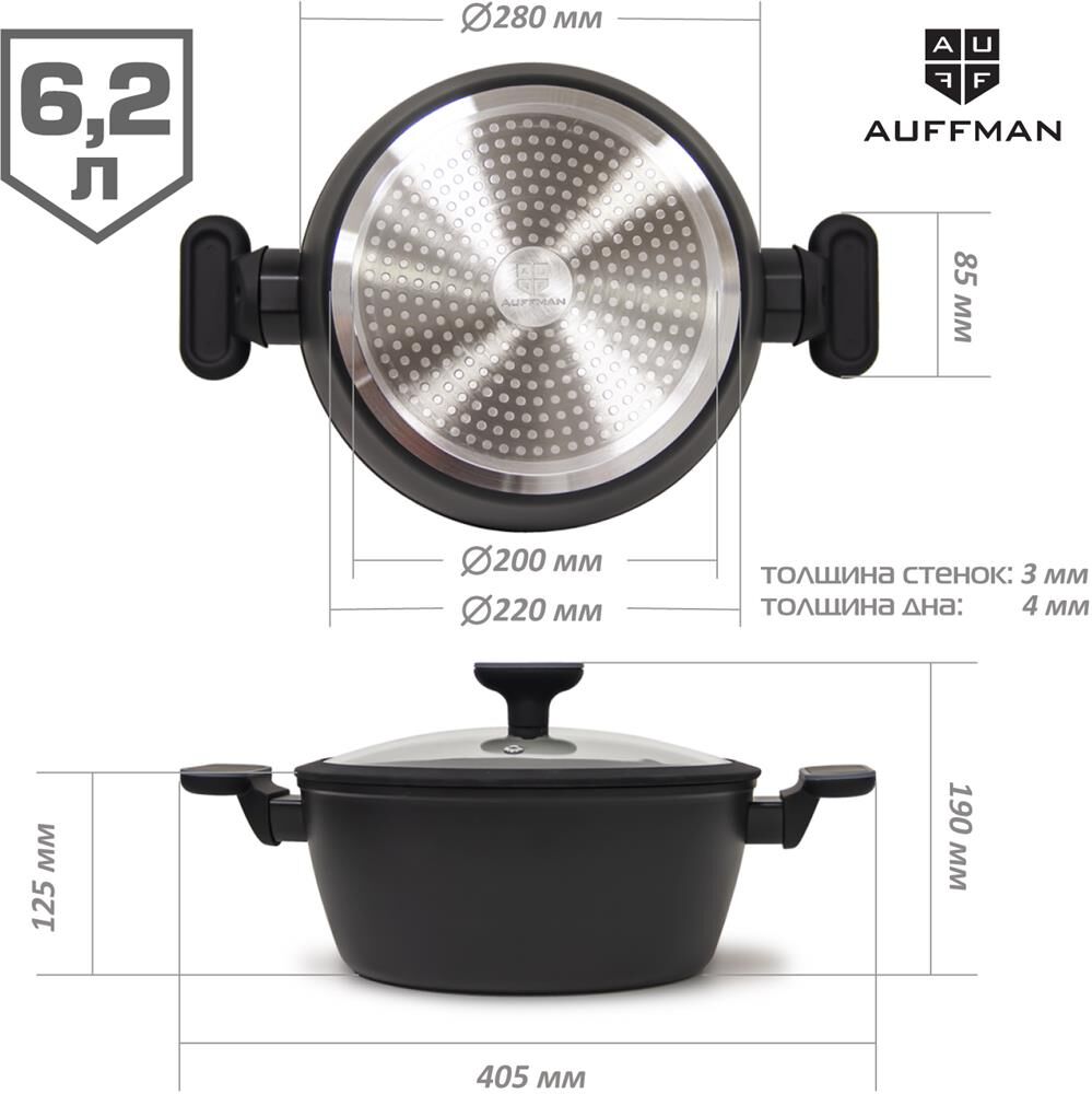 Кастрюля AUFFMAN AM-3102 объем 6,2л с крышкой 28*11,5см