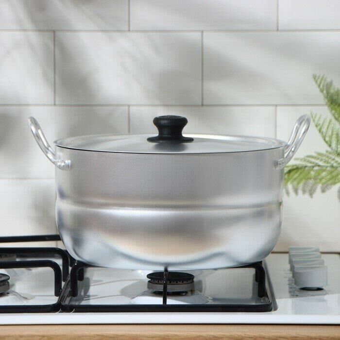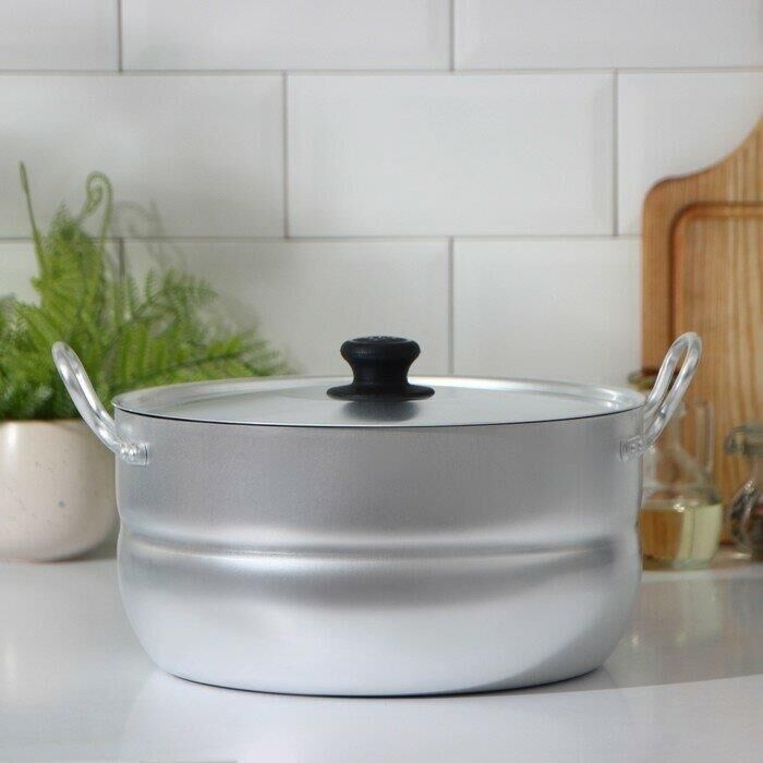 Вид продукции Кастрюли Диаметр, см 26 Высота, см 13,5 Толщина, мм 1,5 Литраж, л 6 Категория Матовая посуда Кастрюля с металлической крышкой и двумя металлическими ручками на 6 литров изготовлена из чистого пищевого алюминия методом штамповки. Основные характеристики такой посуды: легкость, прочность, быстрый нагрев, безопасность и доступность.