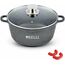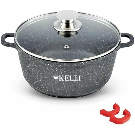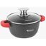 Кастрюля с мраморным антипригарным покрытием. Объем: 1,5 л. Диаметр: 16 см. Индукционное дно. Материал: алюминий. Жаропрочная стеклянная крышка с паровыпуском. В комплекте силиконовые насадки на ручки. Пригодна для всех видов плит.