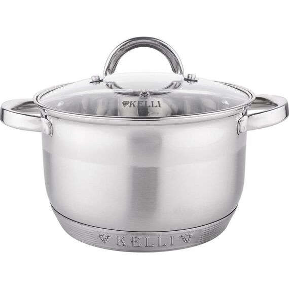 Кастрюля Объем: 6,6л Размер: 24х14,5см Высококачественная нержавеющая сталь Капсульное дно. Зеркальная+матовая полировка Стеклянная крышка с паровыпуском Удобная термостойкая клепаная ручка Подходит для всех видов плит