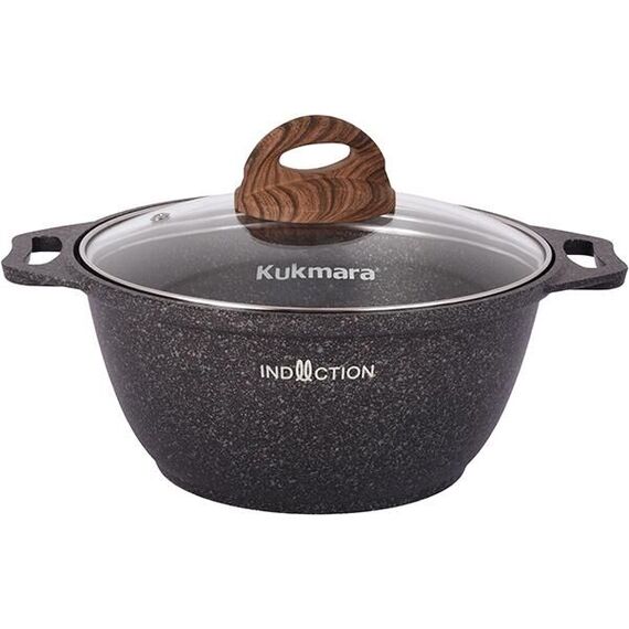 Кастрюля KUKMARA Кгои22а а/пр литая 2,0л стекл/кр Granit ultra original индукция
