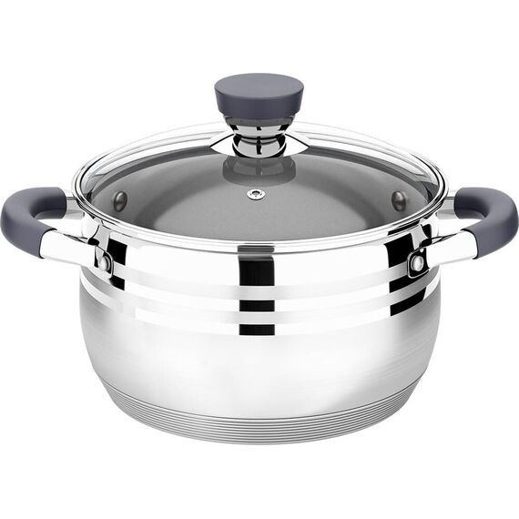 Материал - Нержавеющая сталь AISI 201. Полировка Комбинированная. Дно Индукционное, Капсулированное. Мытье - В посудомоечной машине, Ручная мойка. Использование в духовке Нет. Отверстия для слива воды Нет. Ручки - Нержавеющая сталь, Полые, Силиконовая отделка