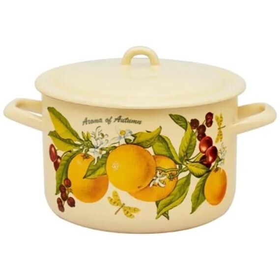 Объем, л./размер, см: 4.3 л Материал: эмалированная сталь Коллекция/серия: Фруктовая фантазия Торговая марка: Лысьвенские эмали Толщина дна: 0.5 Толщина стенок: 0.5 Источник тепла: Все виды плит Крышка: эмалированная Внутреннее покрытие: эмаль Внешнее покрытие: эмаль