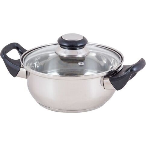 Кастрюля с крышкой 1,4 л (размеры: 16*7,5 см) Одинарное дно крышка из стекла ручки БАКЕЛИТ Толщина стенок - 0,28 мм Материалы: сталь, стекло, бакелит Упаковка: стрейч пленка + стикер